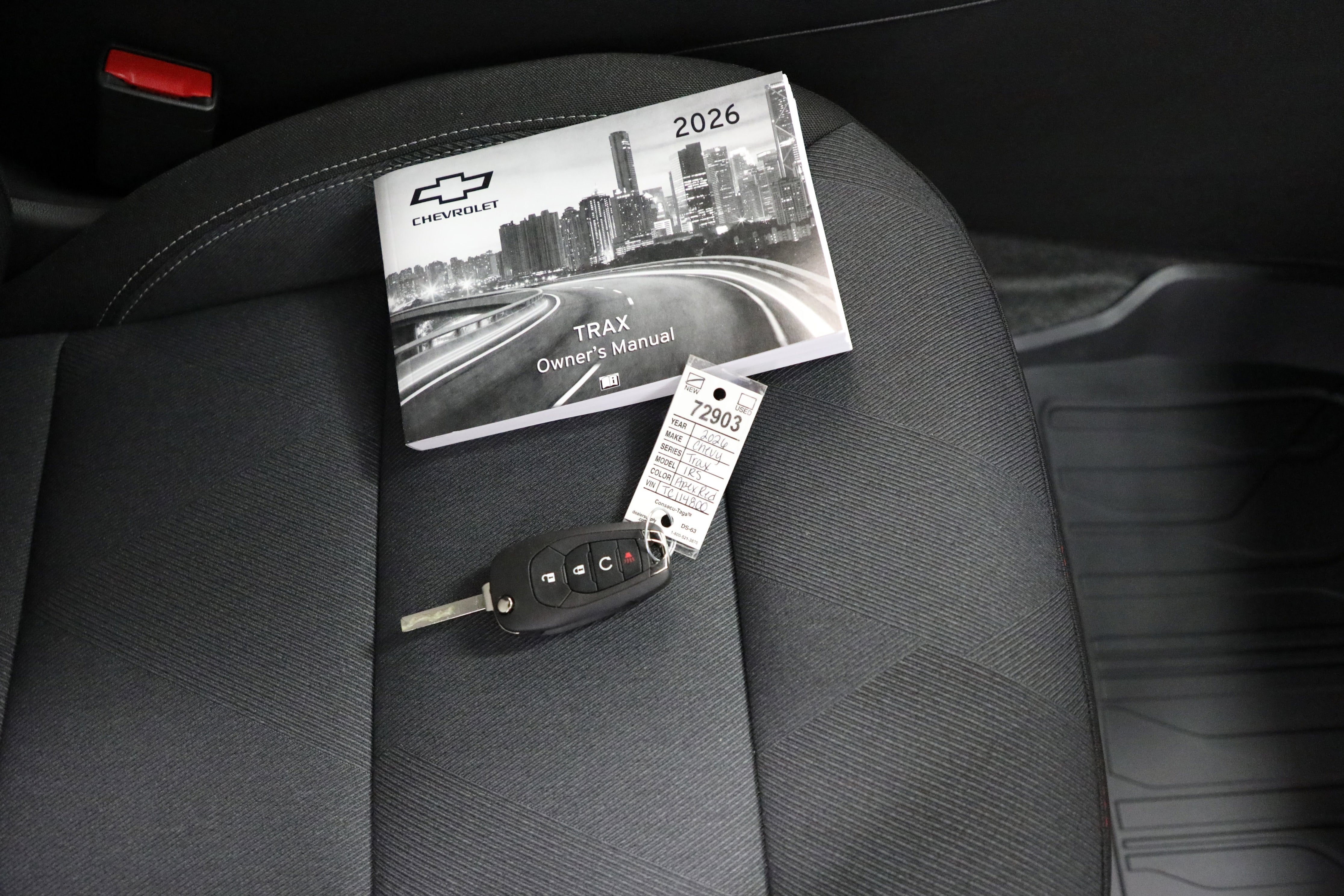 Turn heads in this bold 2026 Chevrolet Trax 1RS, finished in eye-catching Apex Red with athletic RS-inspired styling. Powered by an efficient ECOTEC 1.2L Turbo and paired with a smooth 6-speed automatic transmission, this Trax delivers the perfect balance of performance, efficiency, and everyday practicality.