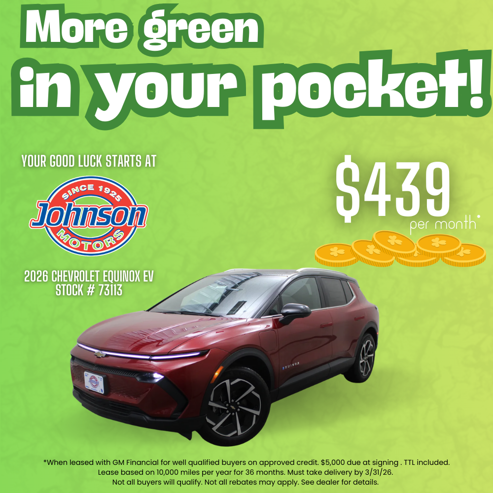 *When leased with GM Financial for well qualified buyers on approved credit. $5,000 due at signing . TTL included. Lease based on 10,000 miles per year for 36 months. Must take delivery by 3/31/26. Not all buyers will qualify. Not all rebates may apply. See dealer for details.