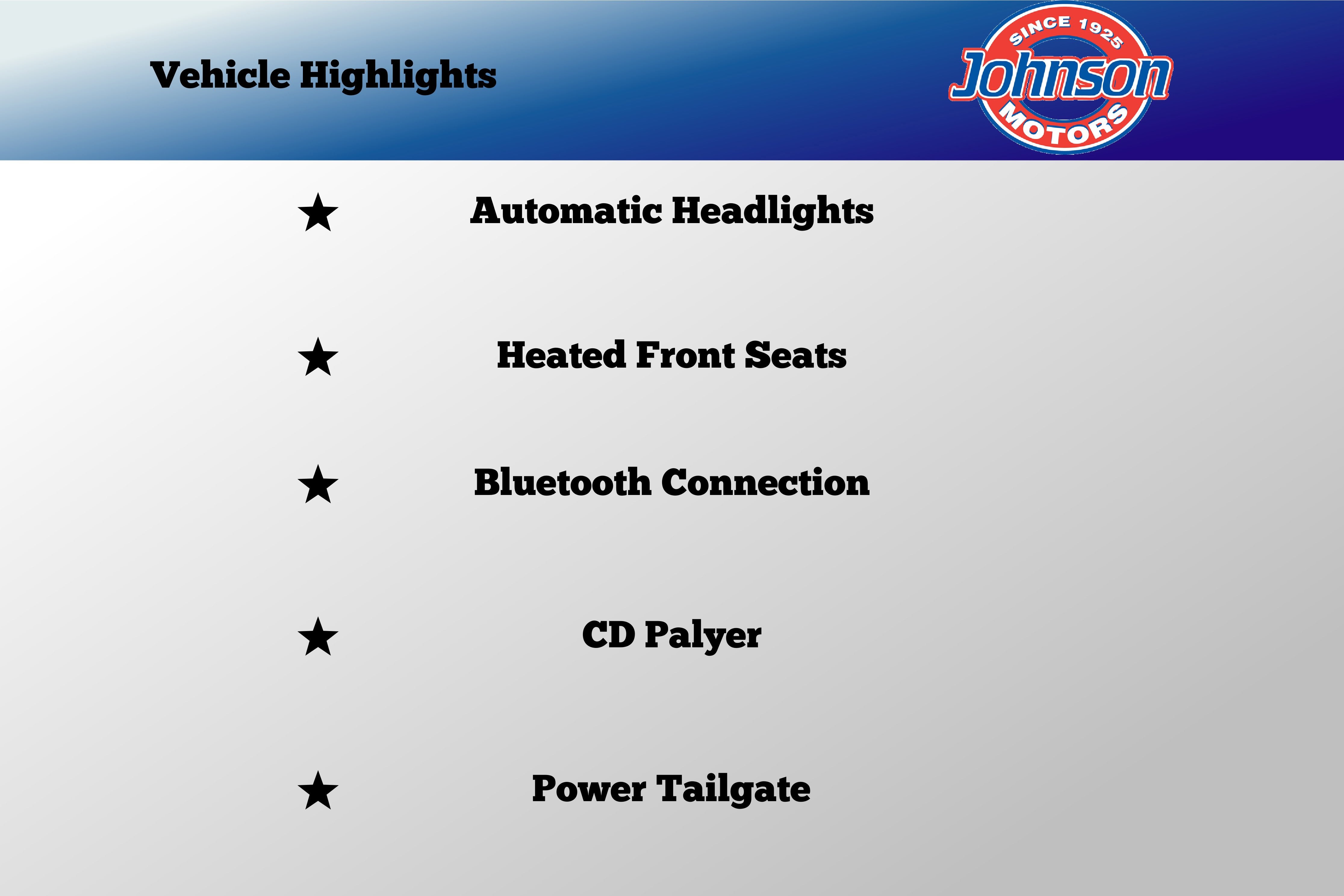 - Tailgate/Rear Door Lock Included w/Power Door Locks