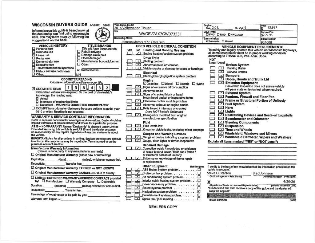 New vehicle pricing includes all offers and incentives. Tax, Title and Tags not included in vehicle prices shown and must be paid by the purchaser. While great effort is made to ensure the accuracy of the information on this site, errors do occur so please verify information with a customer service rep. This is easily done by calling us at (715) 388-7909 or by visiting us at the dealership. **With approved credit. Terms may vary. Monthly payments are only estimates derived from the vehicle price with a 72 month term, 5.9% interest and 20% downpayment.The Manufacturer’s Suggested Retail Price excludes tax, title, license, dealer fees and optional equipment. Dealer sets final price.