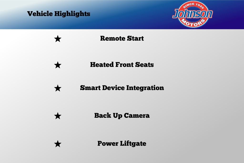 - DRIVER CONVENIENCE PACKAGE includes (BTV) Remote Start (CJ2) dual-zone automatic climate control (KA1) driver and front passenger heated seats (N34) leather-wrapped steering wheel (VY7) leather-wrapped shift lever (UG1) Universal Home Remote and (TB5) power liftgate