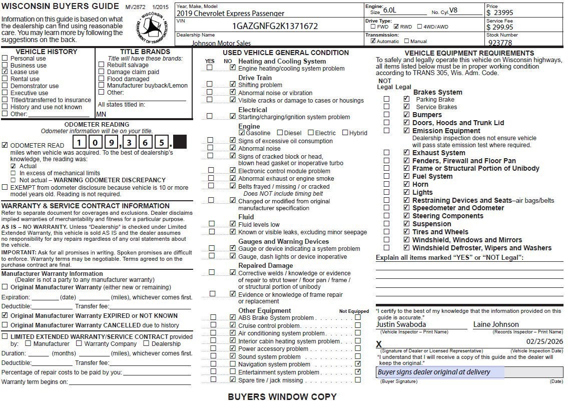 Price does not include sales tax, title, registration, or $299.95 service fee.
