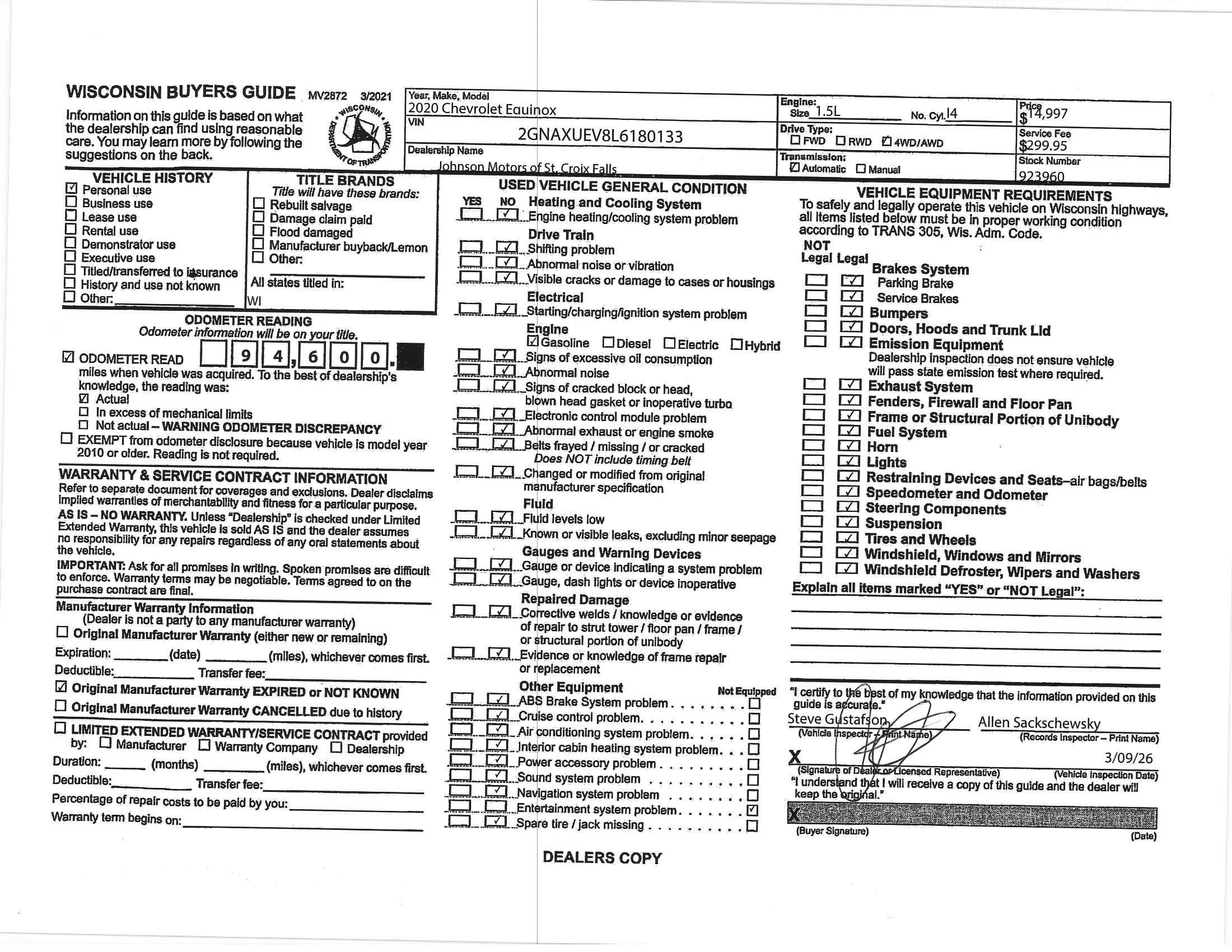 Dealer Comments