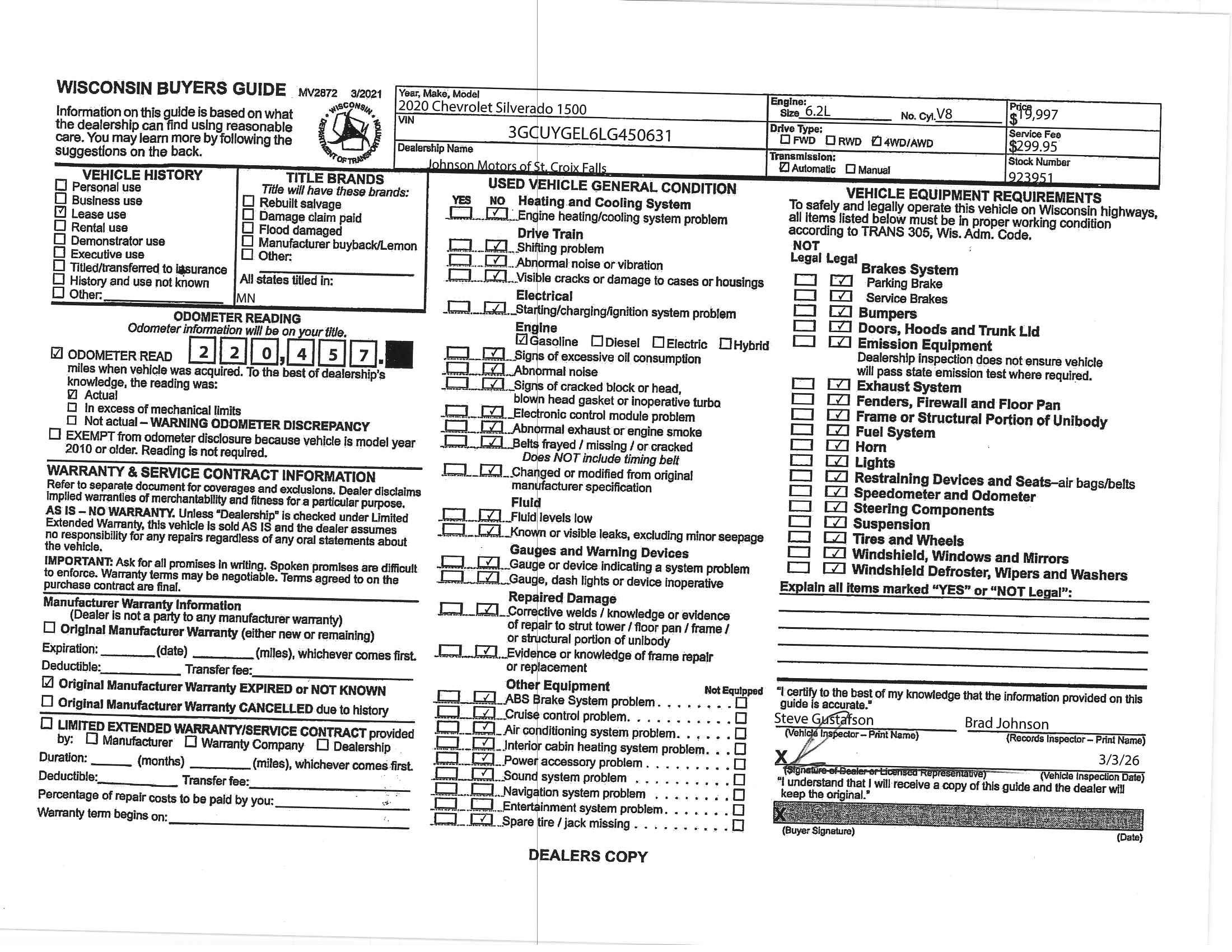 New vehicle pricing includes all offers and incentives. Tax, Title and Tags not included in vehicle prices shown and must be paid by the purchaser. While great effort is made to ensure the accuracy of the information on this site, errors do occur so please verify information with a customer service rep. This is easily done by calling us at (715) 388-7909 or by visiting us at the dealership. **With approved credit. Terms may vary. Monthly payments are only estimates derived from the vehicle price with a 72 month term, 5.9% interest and 20% downpayment.The Manufacturer’s Suggested Retail Price excludes tax, title, license, dealer fees and optional equipment. Dealer sets final price.