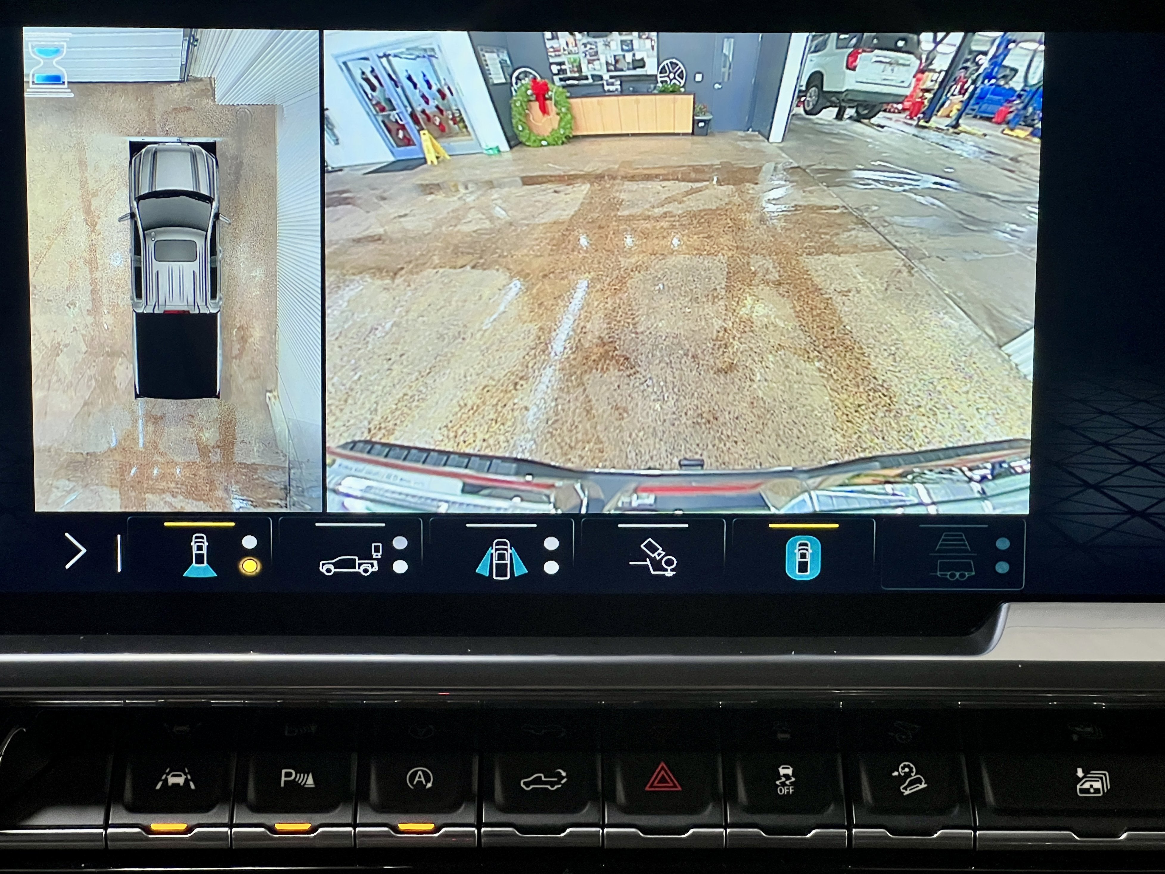 - provides the driver with an overhead view of the scene around the vehicle on a center stack display. Includes front camera washer.