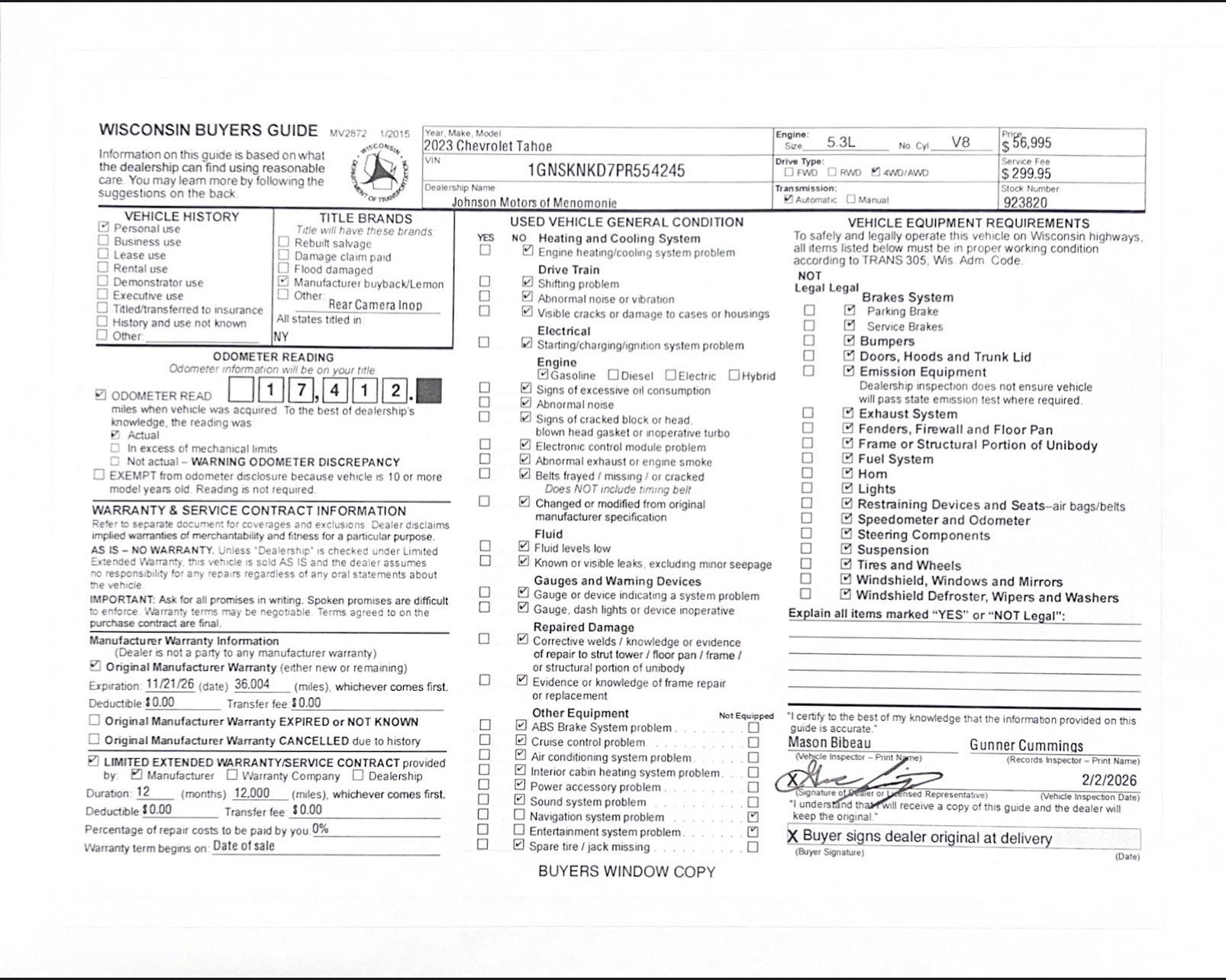 Price does not include sales tax, title, registration, or $299.95 service fee.