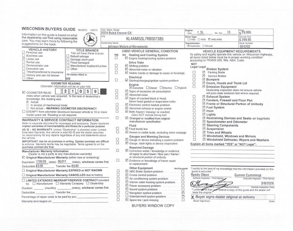 Price does not include sales tax, title, registration, or $299.95 service fee.