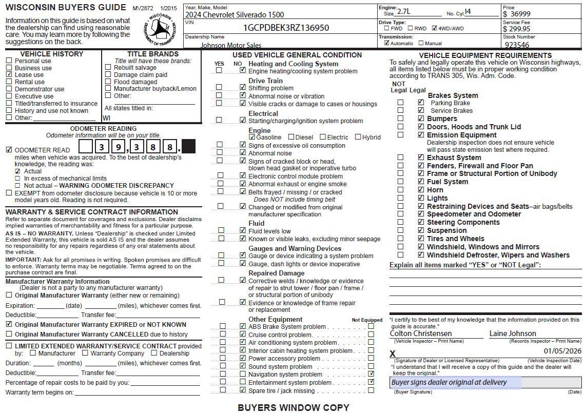Price does not include sales tax, title, registration, or $299.95 service fee.