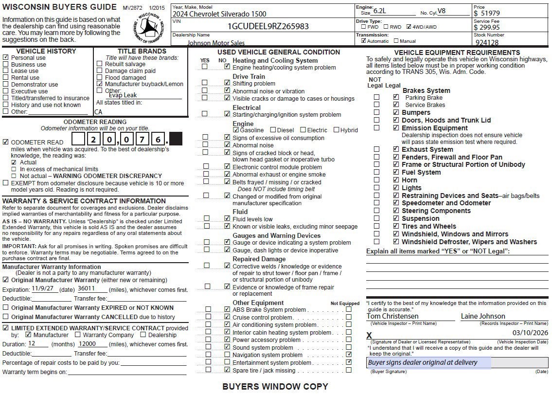 - Vehicle Name: Chevrolet Silverado 1500