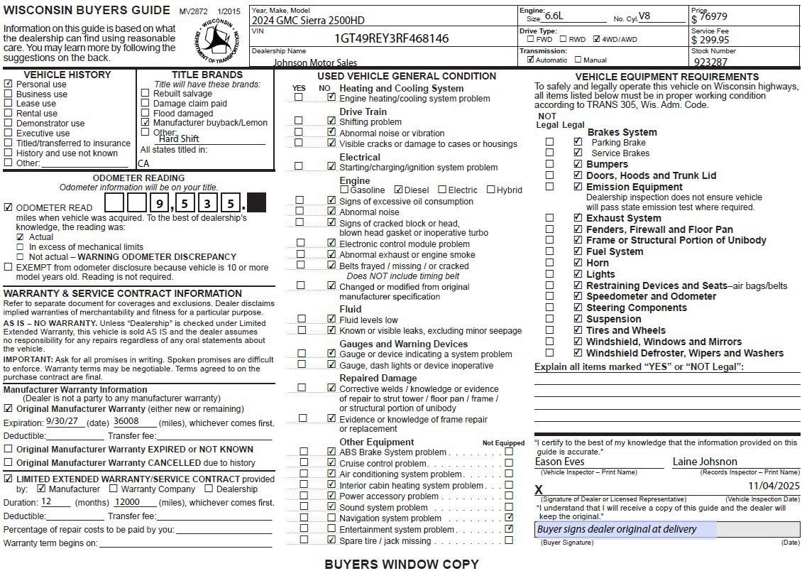 Price does not include sales tax, title, registration, or $299.95 service fee.. bb