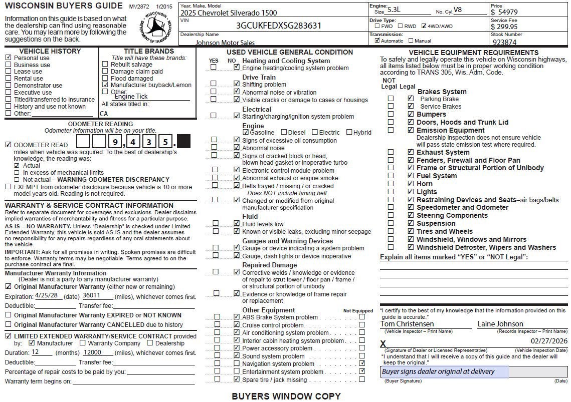 New vehicle pricing includes all offers and incentives. Tax, Title and Tags not included in vehicle prices shown and must be paid by the purchaser. While great effort is made to ensure the accuracy of the information on this site, errors do occur so please verify information with a customer service rep. This is easily done by calling us at (715) 388-7909 or by visiting us at the dealership. **With approved credit. Terms may vary. Monthly payments are only estimates derived from the vehicle price with a 72 month term, 5.9% interest and 20% downpayment.The Manufacturer’s Suggested Retail Price excludes tax, title, license, dealer fees and optional equipment. Dealer sets final price.